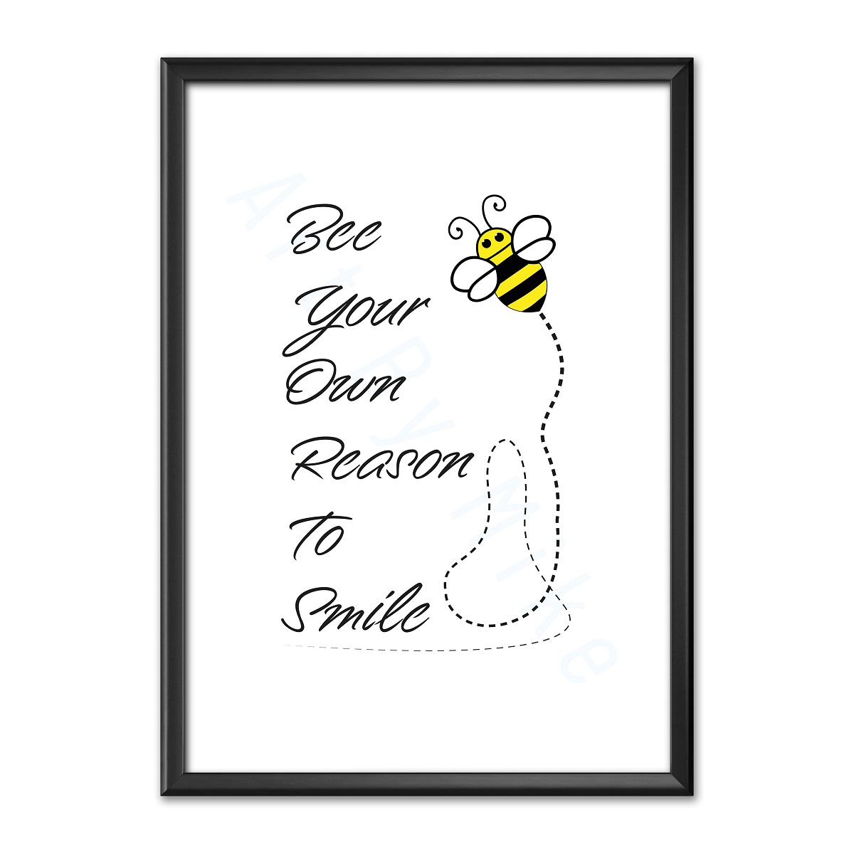 “Bee your own reason to smile” – Inspirational print featuring a cartoon bee reminding you to be yourself and not conform to what people think you should be. Ideal for office, studio or living areas.